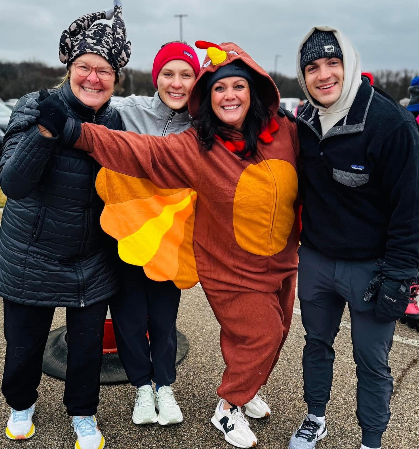 Once a small, but enthusiastic group of 15-20 participants, the annual 5K has grown exponentially over the years, and has blossomed into a group of over 160 family members and friends from around town - gathering each year on Thanksgiving morning. Paula continues to extended the invitation to family and friends, and anyone else in the community who just wants to get out there and move on Thanksgiving morning. She notes that her side of the family tends to gather and celebrate the holiday the weekend before Thanksgiving. This opens up their Thanksgiving morning each year. Afterwards, Bryan and Paula and kids - now adults - head over to gather with Bryan’s side of the family for their annual turkey dinner. Many other families who participate do the same, and so it’s just a “perfect time to get outdoors, count your blessings, and have a little fun!”, states Paula.