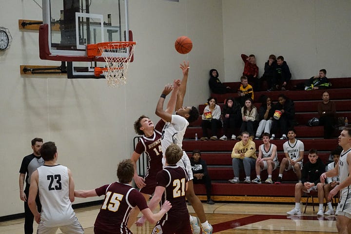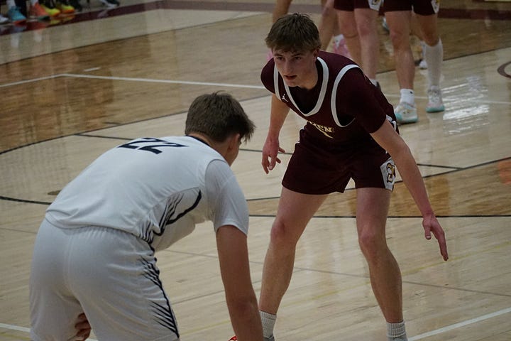 The second half followed a similar pattern. The Gryphons regained the lead, 40-37, only to watch the Hubmen tie the game at 41. Eagle Ridge held the lead one last time at 50-49. With Jordan ahead 59-56 in the final three minutes, the Hubmen set out on an offensive flurry. Graham Helgerson secured an offensive rebound and scored on the putback. Mitchell Schmidt tipped in a missed shot. Ari Langheim connected on a baseline three to extend the Hubmen's lead to six. Graham Helgerson broke through the Gryphons’ press to set up Ari Langheim for a layup. Mitchell Schmidt scored off an offensive rebound. The Hubmen outscored Eagle Ridge by nine points to lead 70-60. Lexyn Grof secured the 74-62 win by making all his free throws.