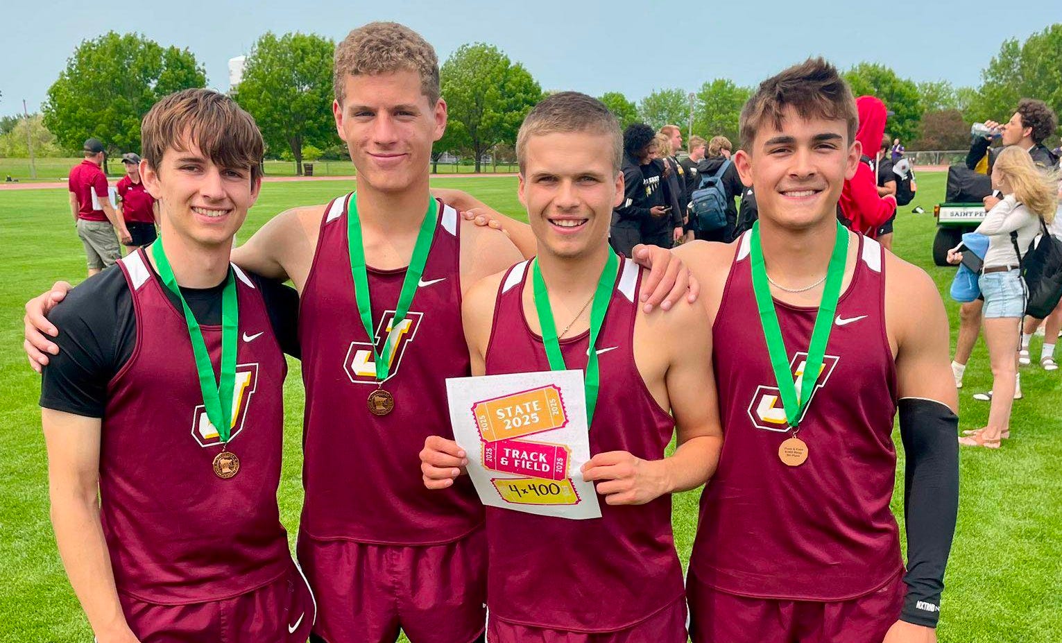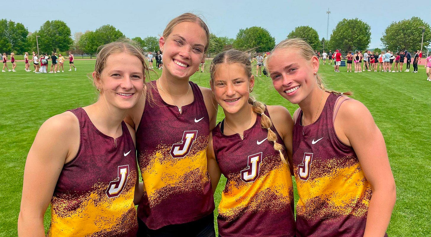 The boys 4x400m relay team of Abel Krause, Noah Salzwedel, Landon Pedersen, and Cullen Hyer qualified with a 3:28.39 and a 5th place finish in the 4x400m relay. This is the 3rd fastest 4x400m relay in Jordan history behind only an All-State team in 2019 and the Class AA State Record holding 2022 team of Owen Montrieul, Will Major, Isaac Young, and Kaleb Sharp.