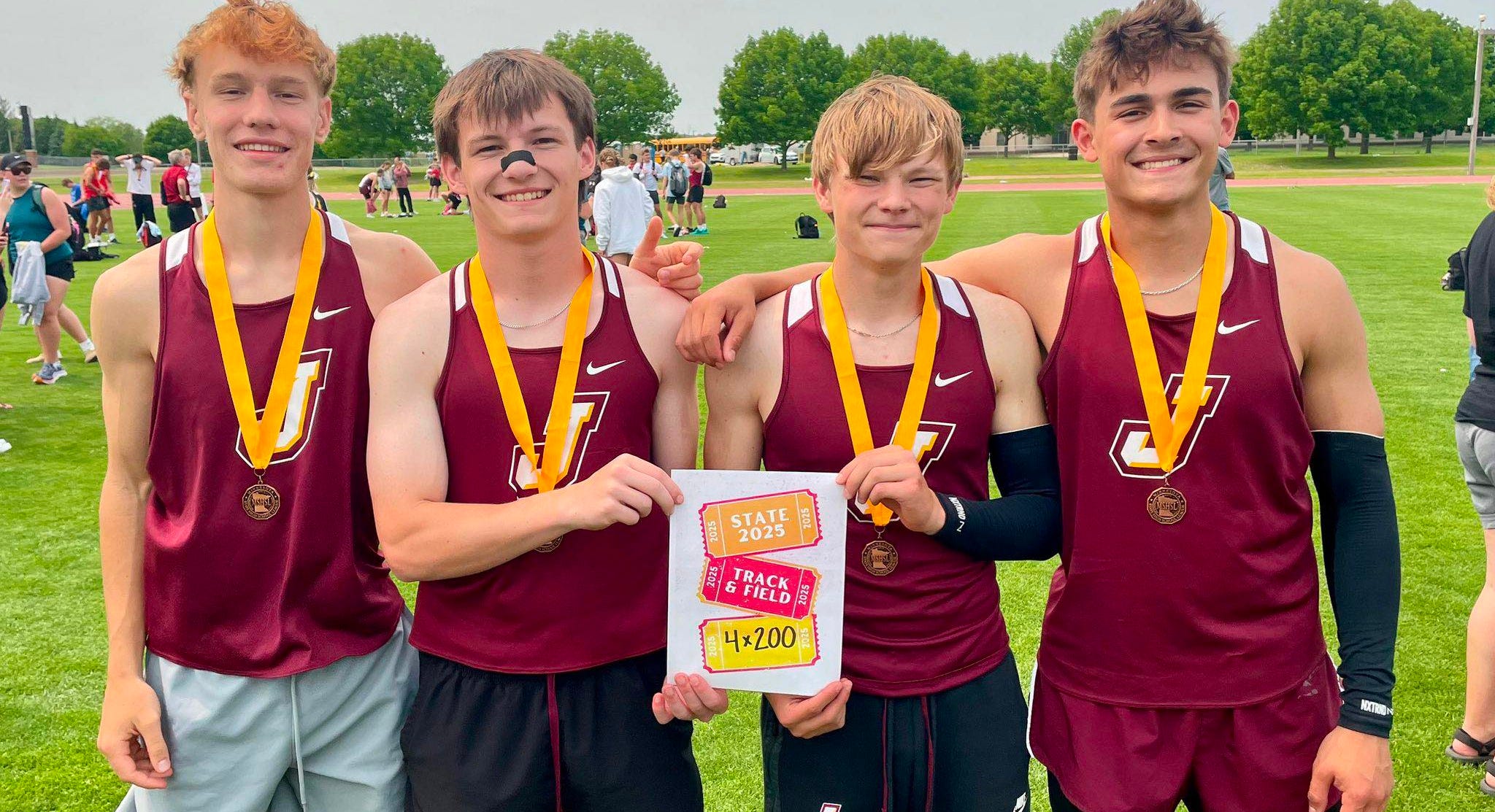 The boys 4x200m relay team Ian Major, Noah Salzwedel, Lincoln Malek, and Owen Halvorson placed 4th in the 4x200m relay with a time of 1:30. 72. This is the 2nd fastest time in school history, behind only the 2019 State Championship Team of Jerry Powell, Thomas Dietel, Bryce Sievers, and Caden Bruzek, who ran 1:29.25.
