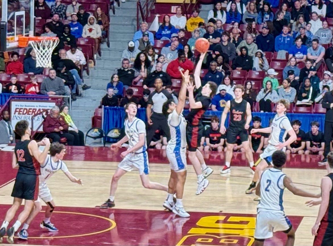 It was a battle of powerhouses in Section 4A at “The Barn” (Williams Arena) on the University of Minnesota campus, with the #2-ranked Wayzata Trojans facing off against the #3-ranked Shakopee Sabers on Thursday night during the Minnesota State High School League Boys’ Basketball State Tournament. This was a rematch of a regular season game in which the Trojans handily embarrassed the Sabers by a whopping 27 points back in December.