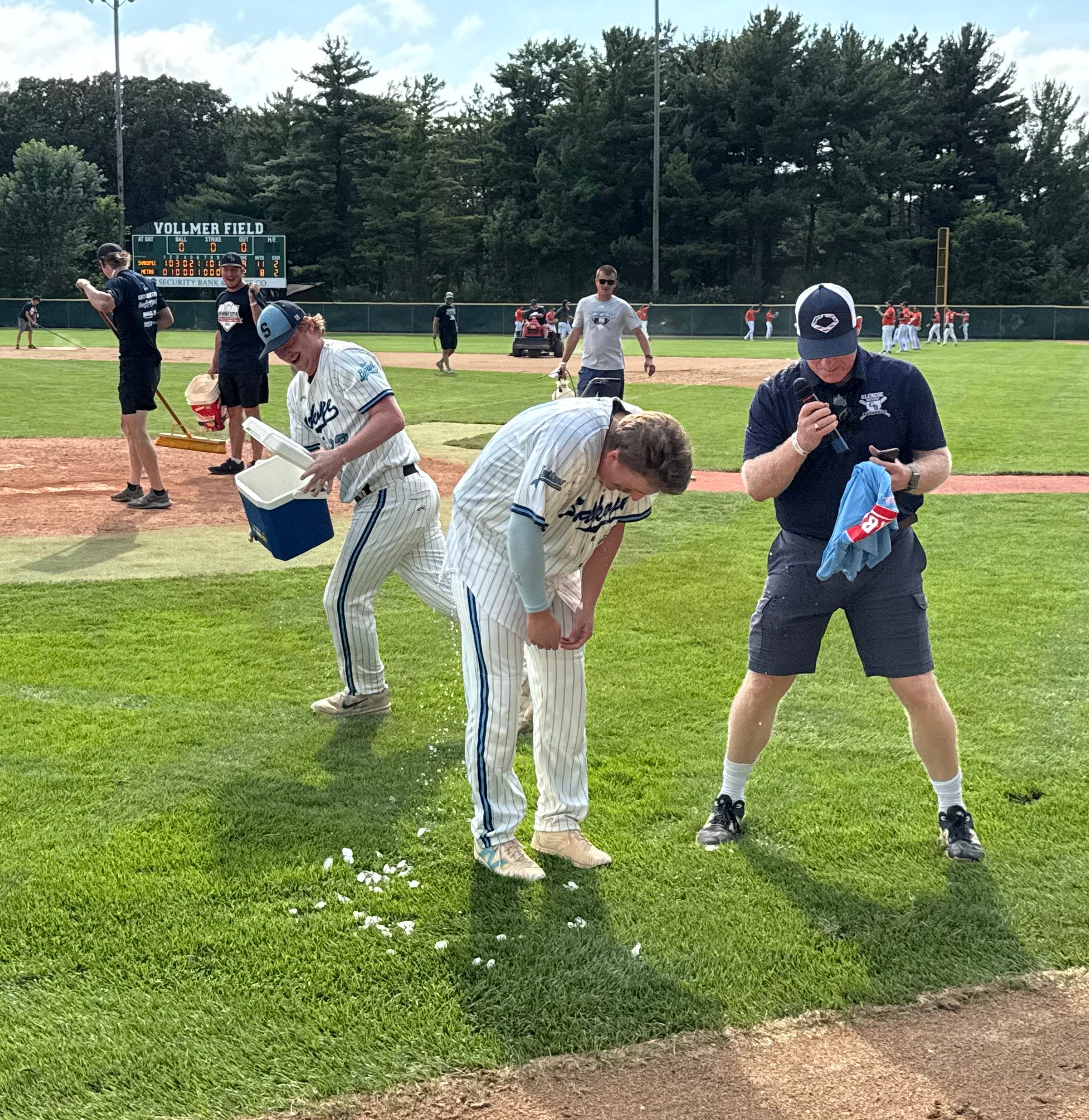 In the top of the sixth inning, Winterfeldt added another RBI with a “seeing-eye” base hit, bringing his total to five. He finished the game going 2-for-3, with the big home run and five RBIs to his credit, and was named the game’s MVP by the state board members attending in Glencoe. Shortstop Kyle Ryan went 3-for-5, with a pair of RBIs and some stellar defense in an impressive game for the veteran leader of the team.