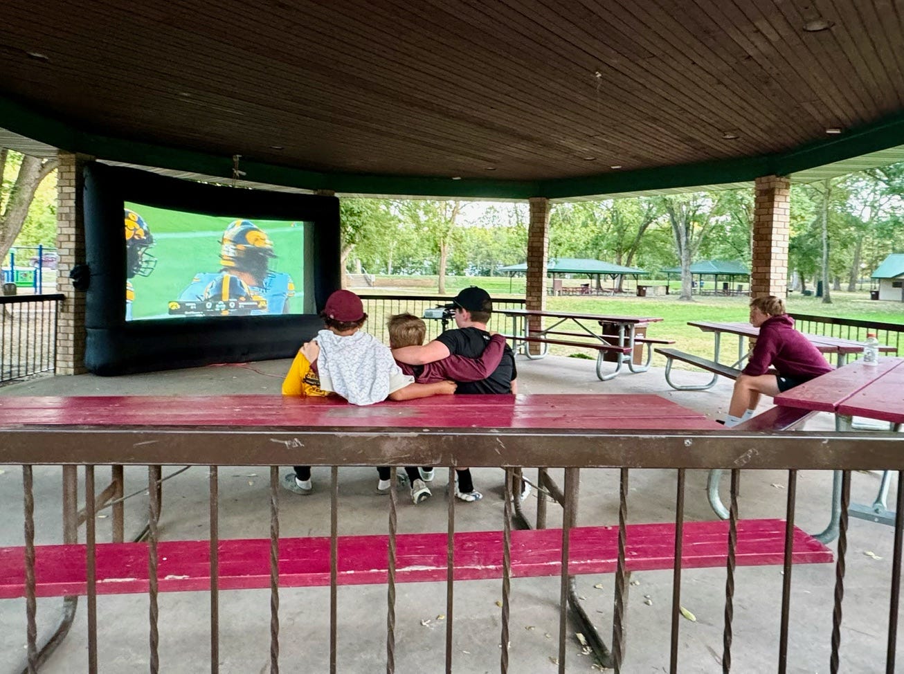 For sports fans, the city had a special treat—a separate screen set up in the park’s gazebo aired the Minnesota vs. Iowa football game, ensuring there was something for everyone.